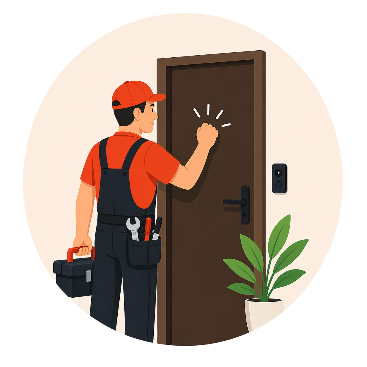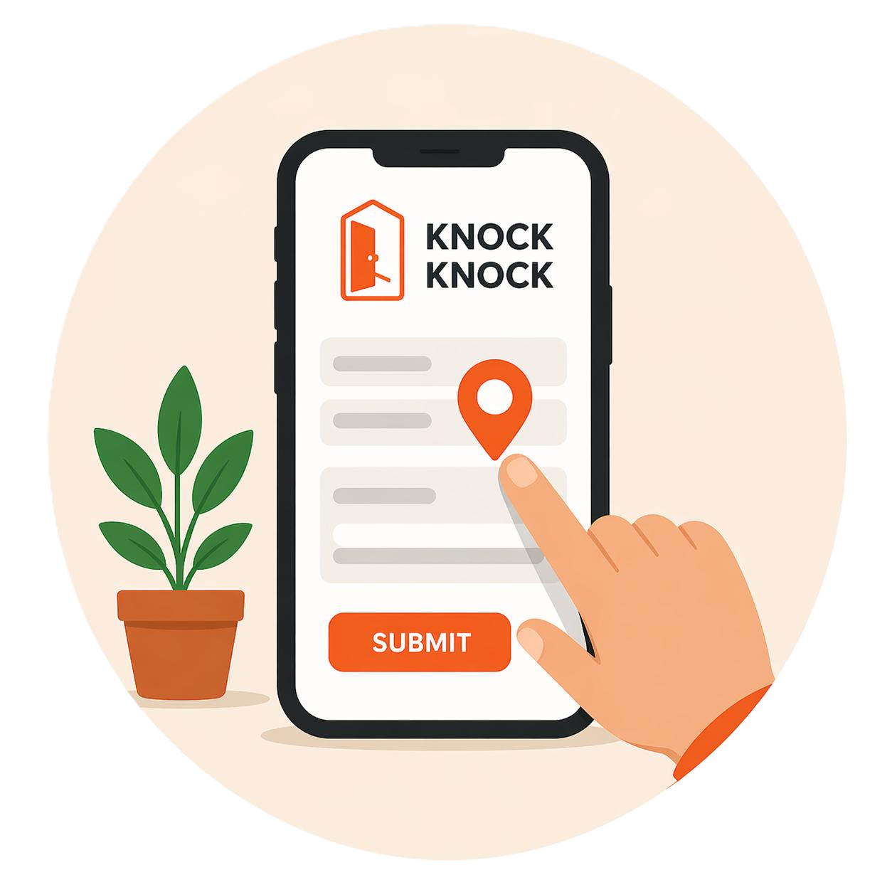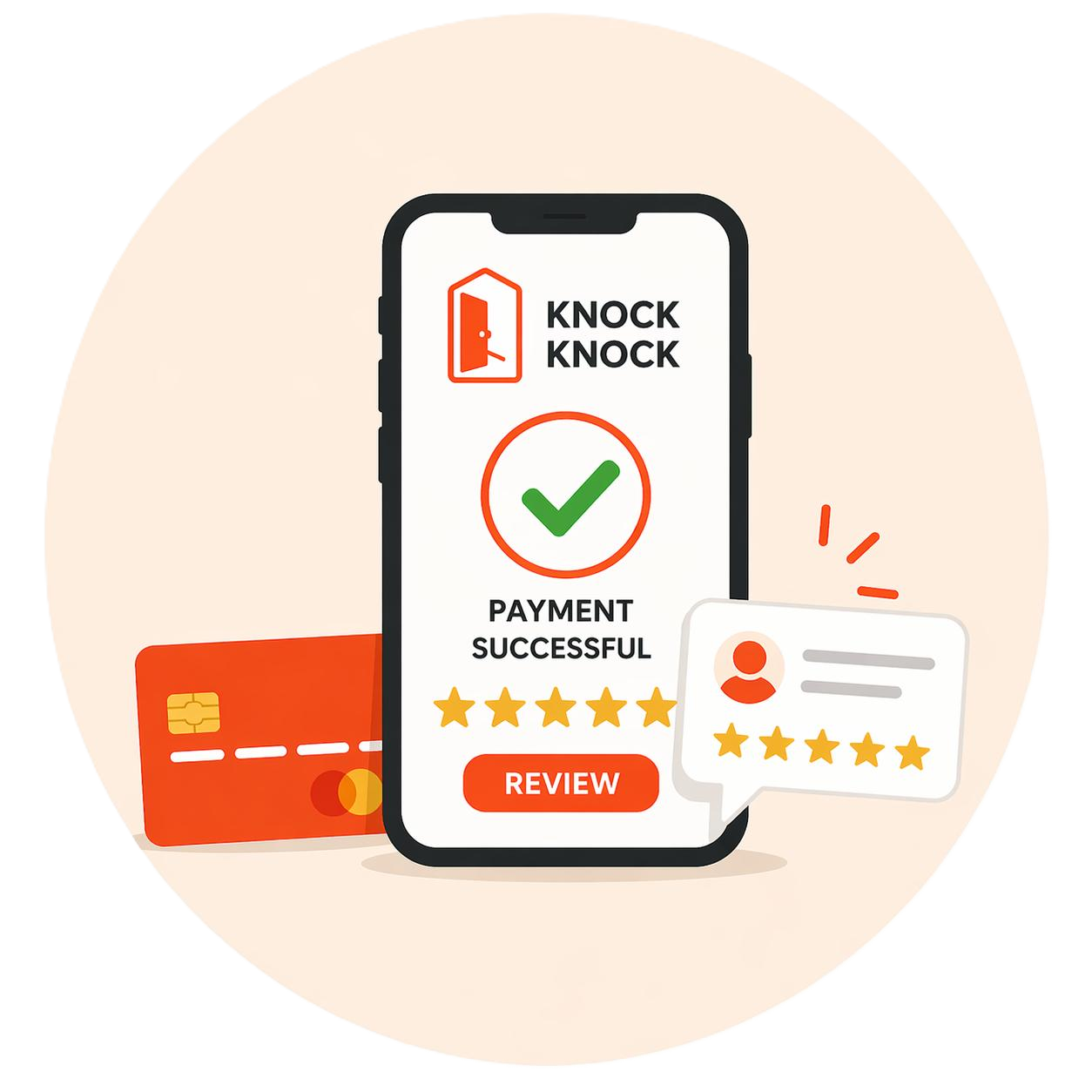 Knock, Knock. Who’s There? Your KnockKnocker has arrived. Once the work is complete, pay your Knock Knocker through the app and leave a review.